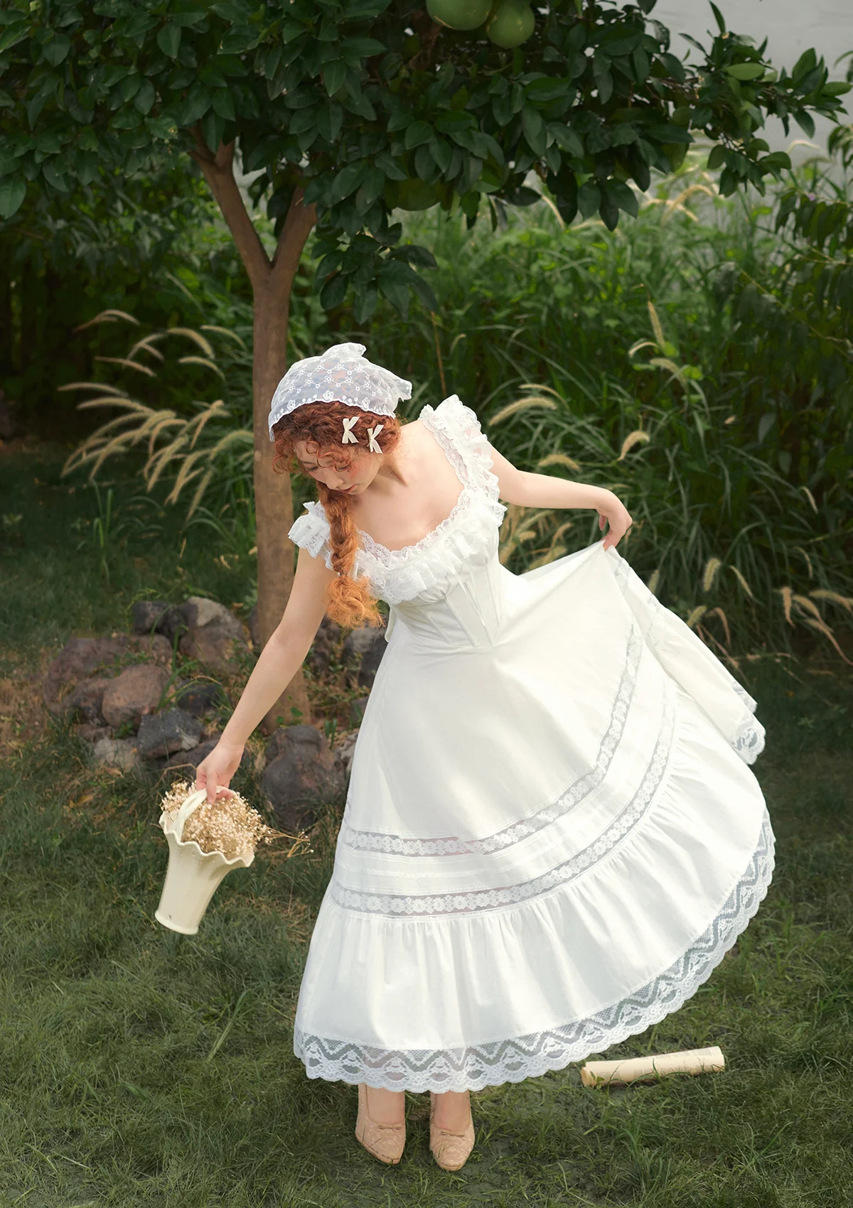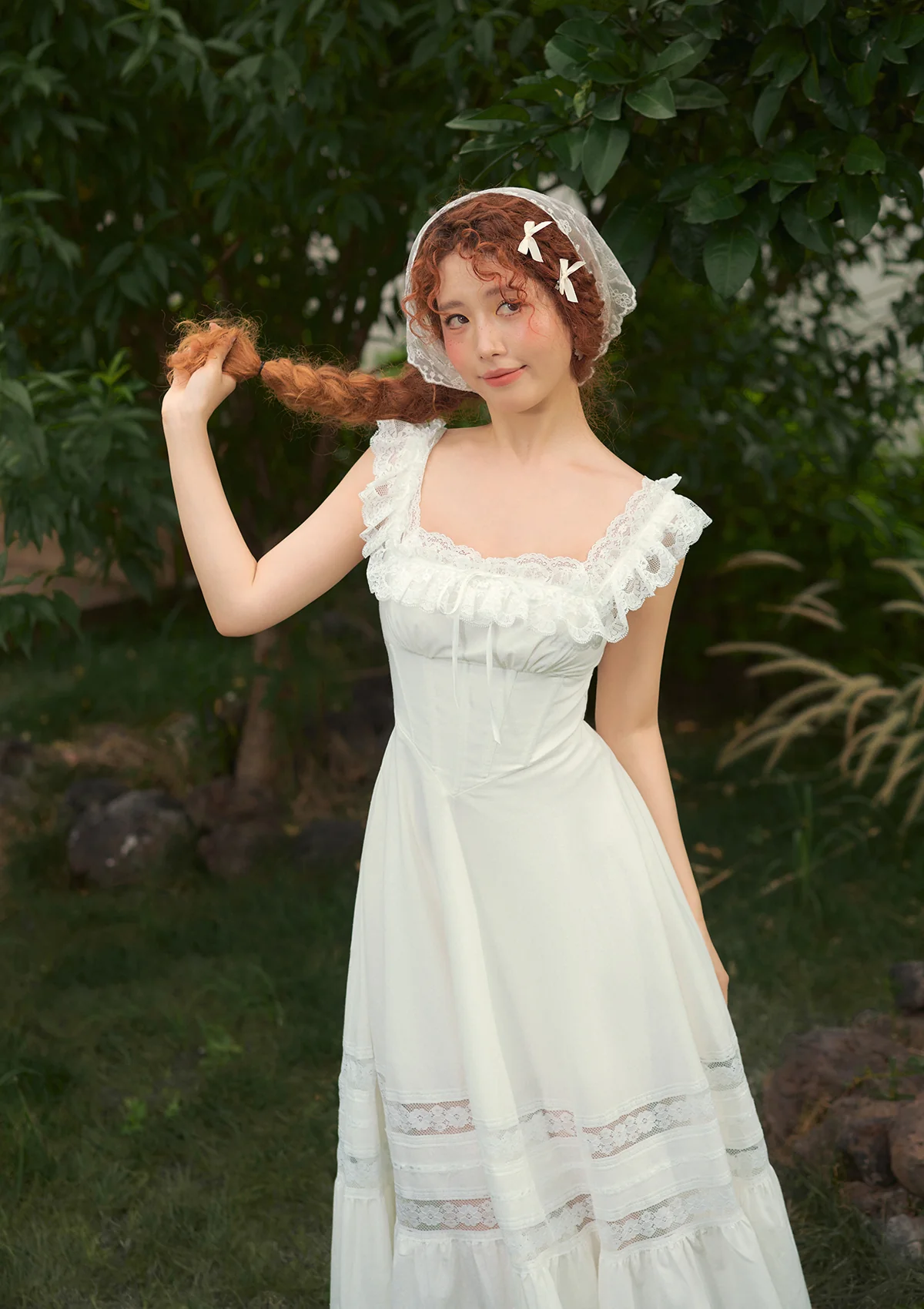 - Sleeveless square neckline with lace accents captures a soft, romantic French vibe.
