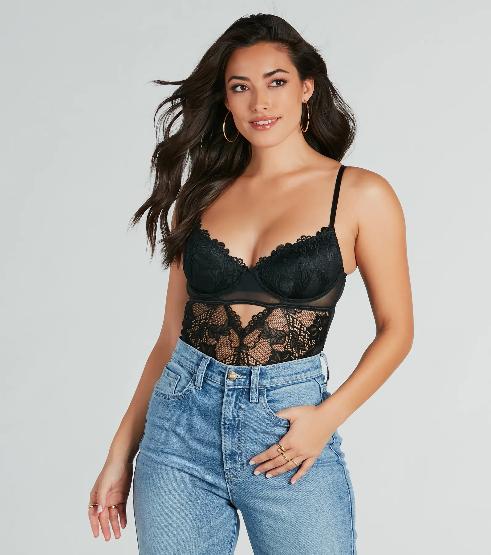 Tempting Chic Sheer Floral Lace Bodysuit